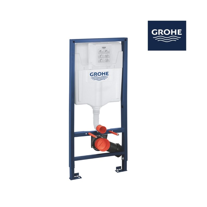 Conjunto BauCeramic c/ Sanita Suspensa Rimless, Estrutura Rapid SL e Placa Descarga Arena 10 384 9SH 00 | Grohe